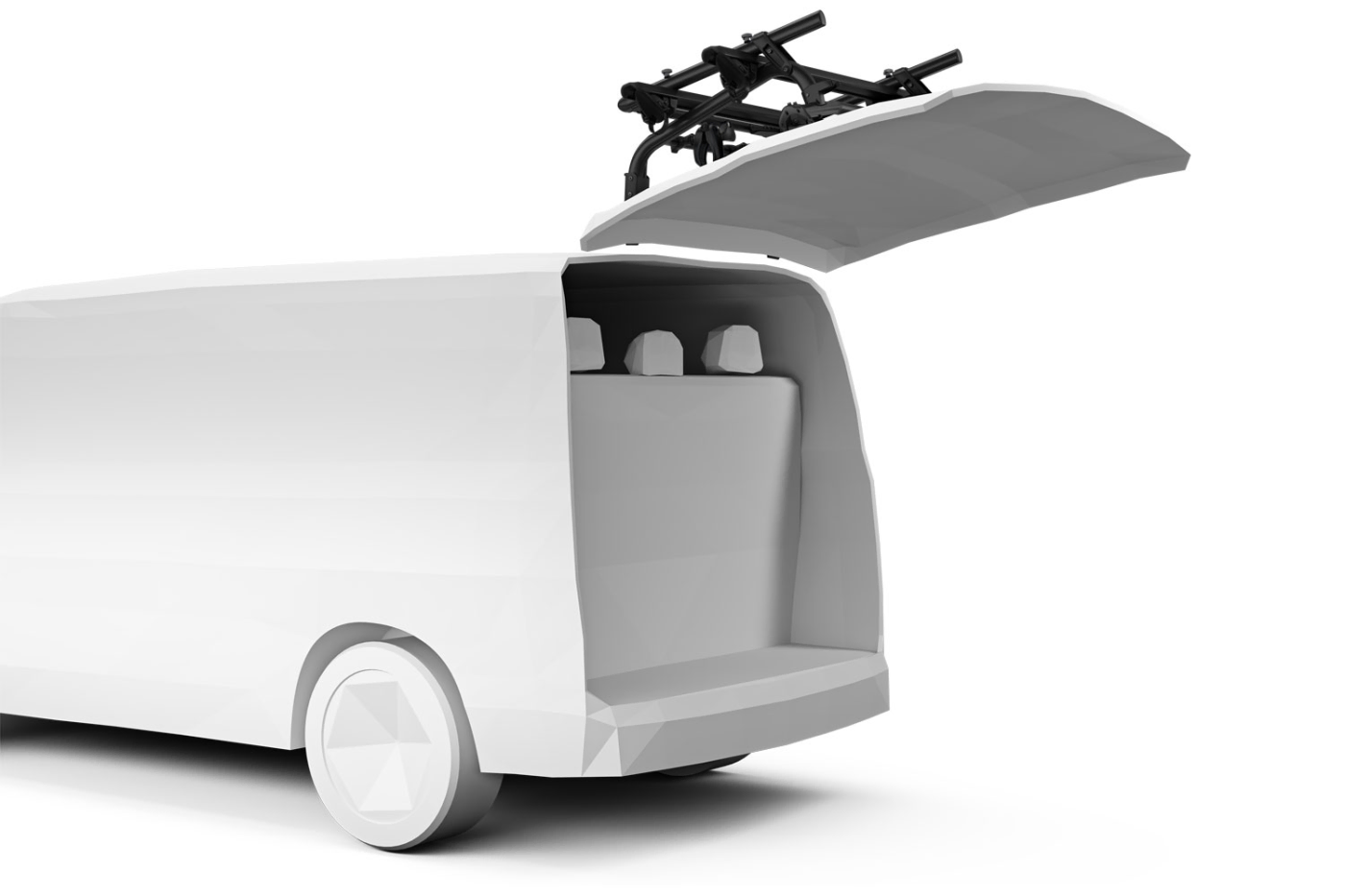 - Tailgate-mounted bike rack dedicated to VW Transporter T6 / T6.1 models with a single rear tailgate (not compatible with double doors or spoilers).