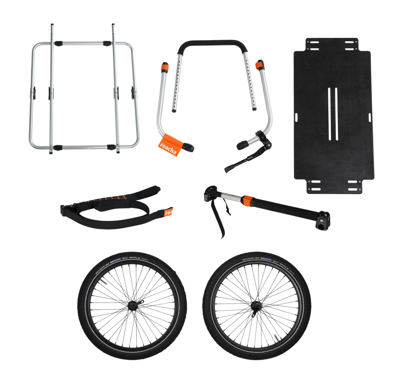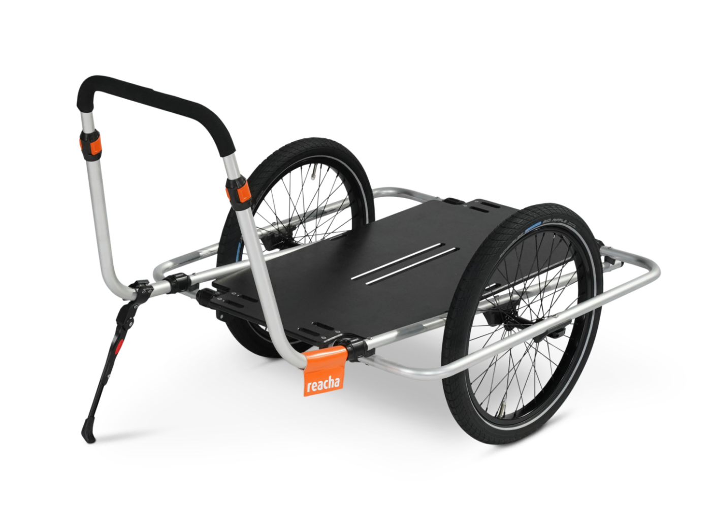 The Reacha City Platform is a versatile bike trailer that is equally well suited as a hand trailer. With a short drawbar it has excellent manoeuvrability and flexibility. The Reacha City Platform has a handy side stand for staility while loading and transports contained loads such as toolboxes or daily shopping as well as your camping, scuba gear etc.