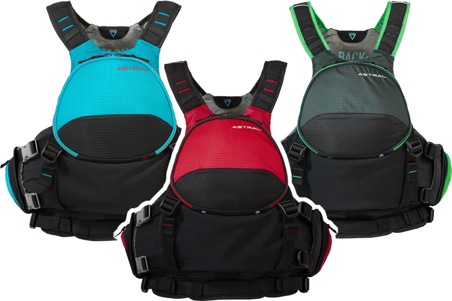 The Astral Blue Jacket buoyancy aid design is based on a slimmed down Green Jacket and tweaked for sea kayaking, the free floating panel and clamshell pocket combines with the hydration bladder pocket to give a slim and comfortable PFD which doesn't lack in storage.
