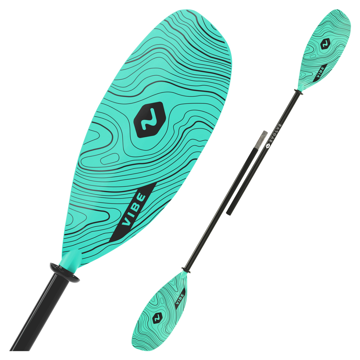 The Vibe Evolve paddle is designed for use with fishing kayaks and wider sit-on-top kayaks particularly those with raised seats where longer reach is needed. The fibreglass shaft provides 230-250cm of adjustment with a simple push-button ferrule.