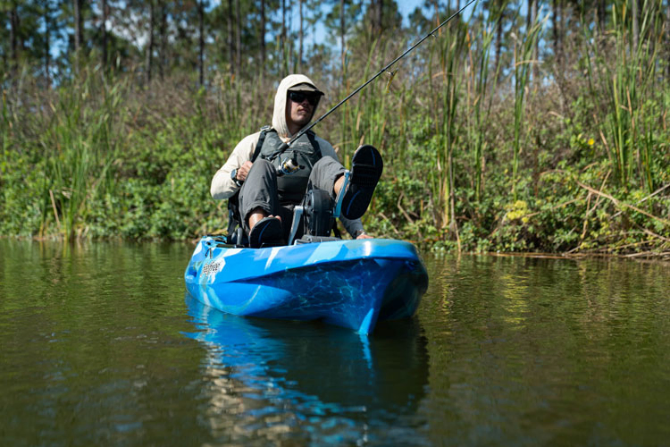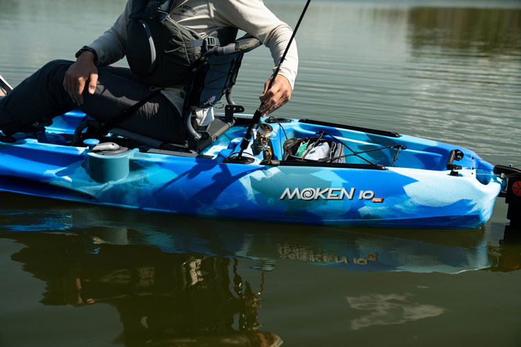 Featuring the Feelfree EZ Rider seat, which can adjust in position to match a wide range of leg lengths, the Feelfree Moken 10 PDL is comfortable for long days on the water. The Beavertail Rudder system is controlled by a hand control to the side of the seat which, along with the ability to pedal backwards to reverse, creates a manoeuvrable fishing kayak without having to sacrifice width and therefore stability.