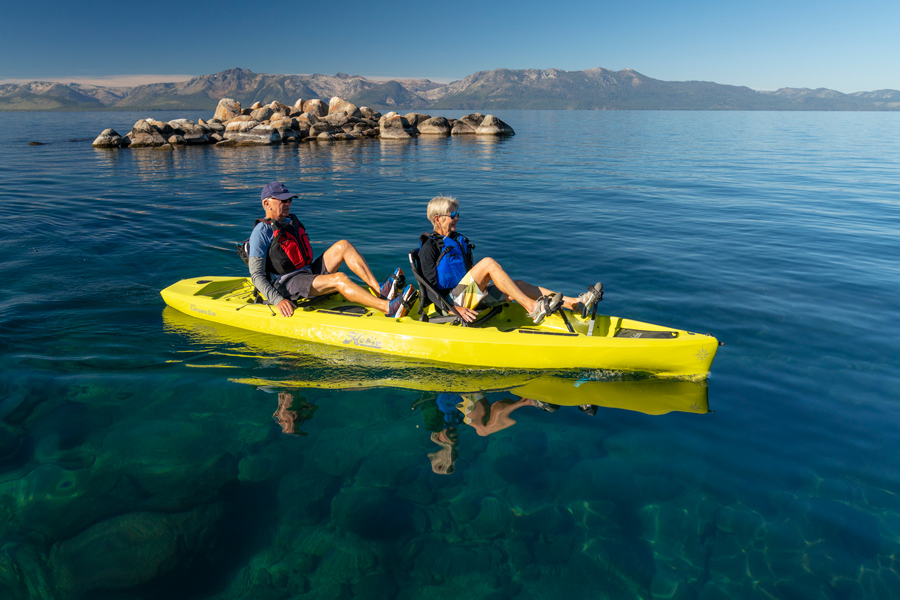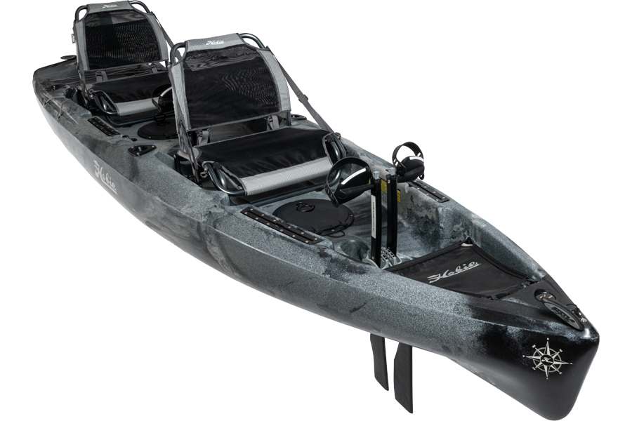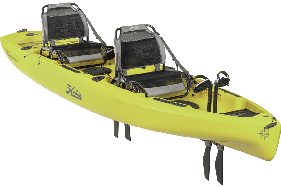 Hobie Kayaks Compass Duo is Hobie Kayaks' stable and comfortable answer to Tandem Pedalling. The Popular Hobie Compass is now available as a tandem, equipped with a Mirage GT Kick-up drive and a Mirage Drive 180 V2 with Kick-up.