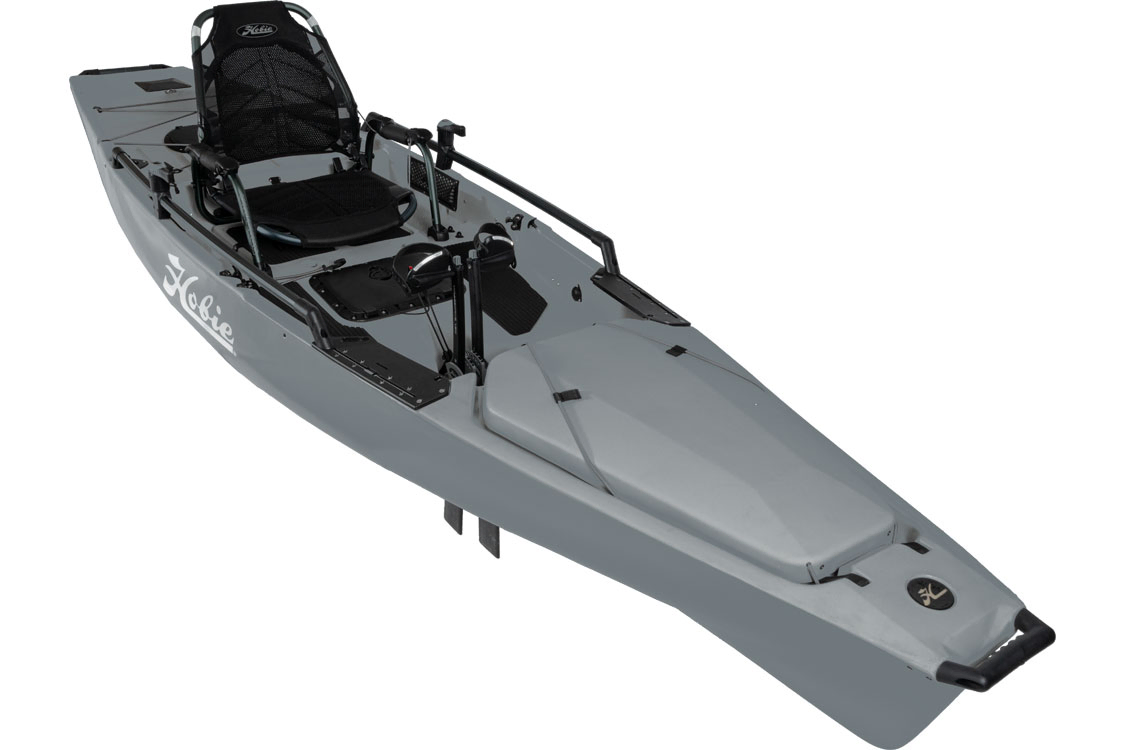 The deck area is packed with every feature you could ever want for on a fishing trip, and as expected from Hobie, retractable rudder controls, storage spaces, work area and drinks holder are all at your fingertips.