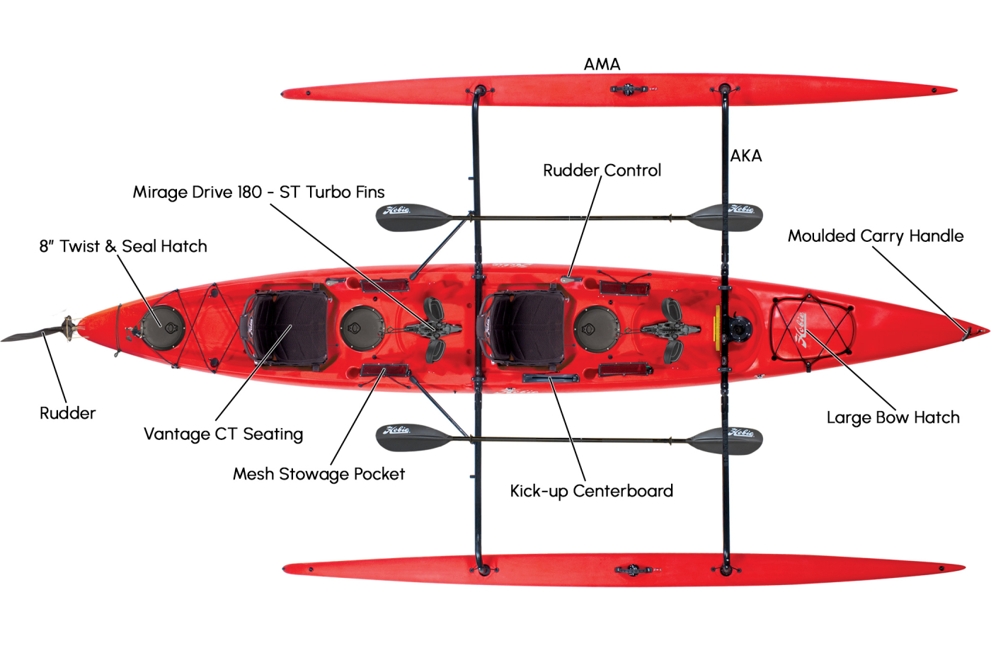 The Tandem Island is a sleek, stable, two-person kayak that glides over the water with ease. However, attaching the aka crossbeams, the AMA floats and the two-piece carbon fibre rig sailing kit, then you and your partner can be sailing over the water, powered by the boomless mainsail. Both cockpits have steering and sail-control lines, making the Tandem Island ideal for partners of all abilities. Include, the boat's generous storage space and large carrying capacity means that the potential for longer days on the water or multi-day trips become a distinct possibility.