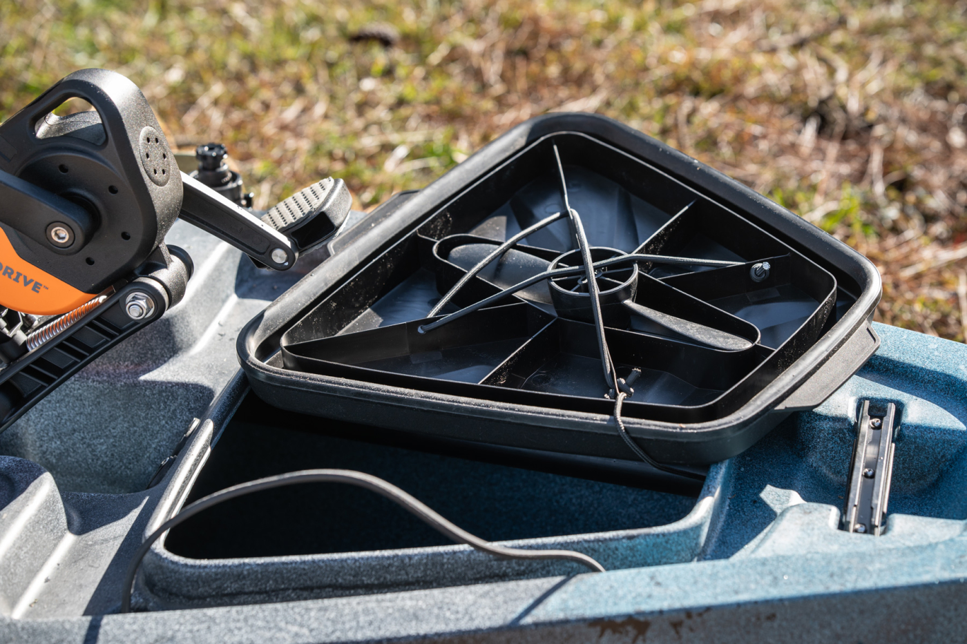 Outfitted with a fully adjustable raised seat, that attaches to a floor-mounted seat shuttle, the paddler can achieve the most comfortable position for long days of pedalling between fishing spots. The seat and the PDL Drive can be removed, to reduce the overall weight of the kayak for easier storage and transportation.