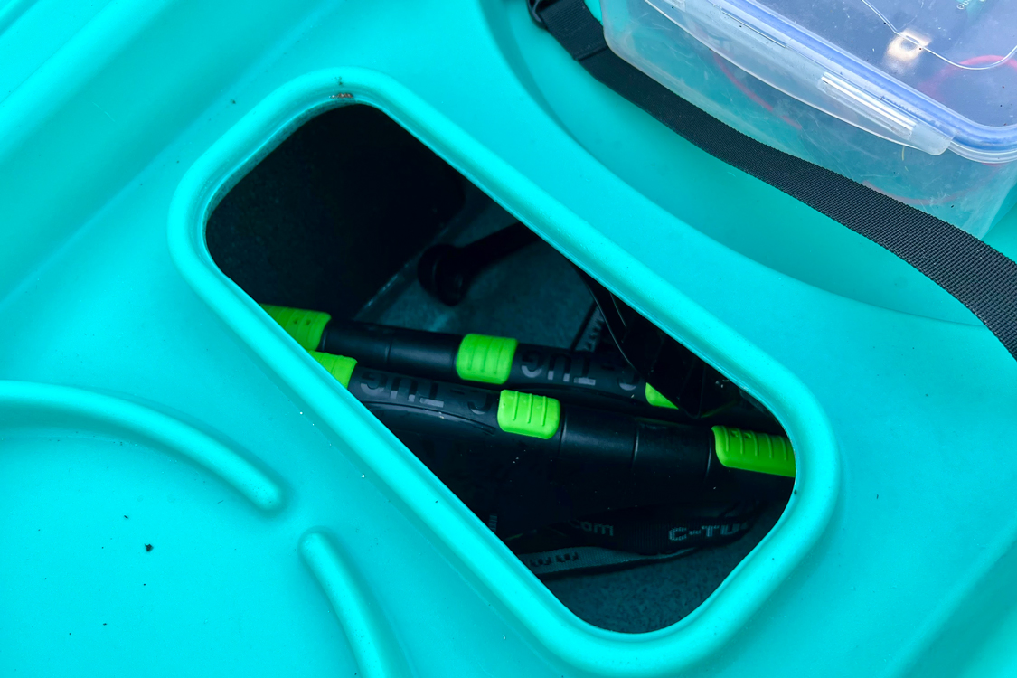 - A clip on the side of the hull secures your backup paddle, out of the way unless you need it