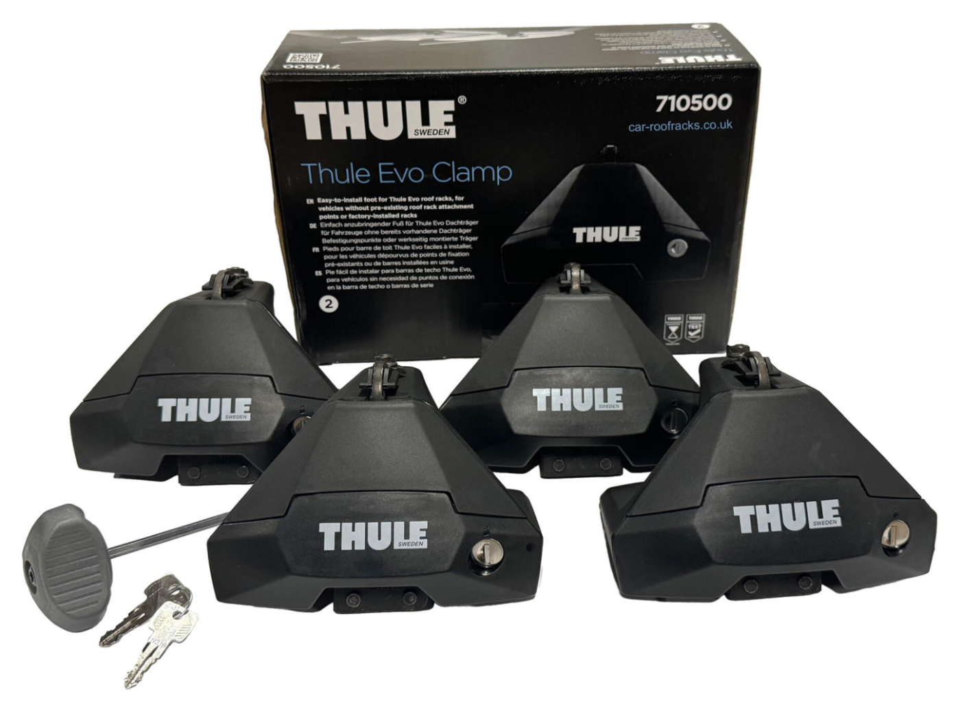 Thule Evo Clamp Foot Pack are one of the three components to make up the Thule Roof Rack for a vehicle with no visible mounting points or rails, "a Normal Roof".