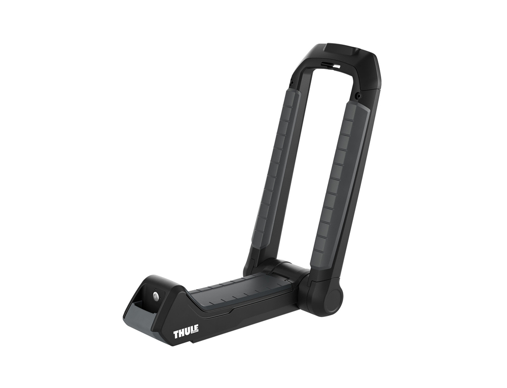 The Thule Hull-A-Port Aero 849 is Thule's most aerodynamic J Cradle, designed to be quieter and more fuel efficient while travelling without a kayak. The folding design means that you can easily fold the cradle down flat onto the roof, allowing you to keep the cradle on your roof while travelling around the inner city without having to worry about parking.