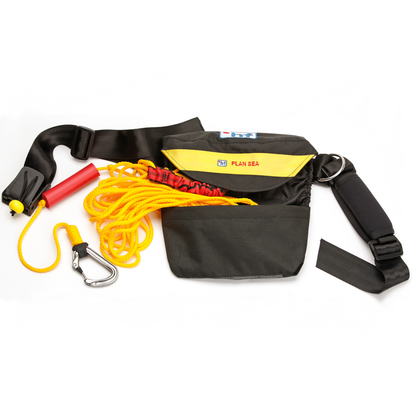 The HF Designs Plan Sea Tow Line is a 15m tow line designed for easy use by sea kayakers. Using a 5mm diameter floating rope which stores in the well sized rope bag making reloading the bag easy, even when on the water. A neoprene pouch on the waist belt houses the stainless karabiner, which has a closed cell foam float and ensures the towlines deployment is quick.