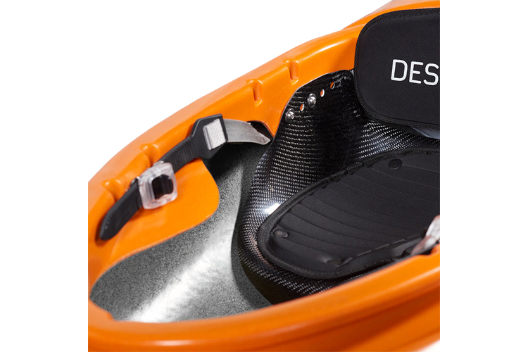 Design Kayaks have outfitted the Awesome sea kayak with a lightweight and super-strong carbon seat, that increases the structure and stiffness of the kayak around the seating area. Behind the carbon seat is a fully adjustable padded backband that gives the paddler plenty of support and connection to the kayak. The cockpit is very spacious and accommodates a variety of paddlers, especially alongside the adjustable foot pegs, which slide back and forth to achieve the best fit. The outfitting also features wide thigh braces that are fixed in the optimal place to enable increased control of the kayak.