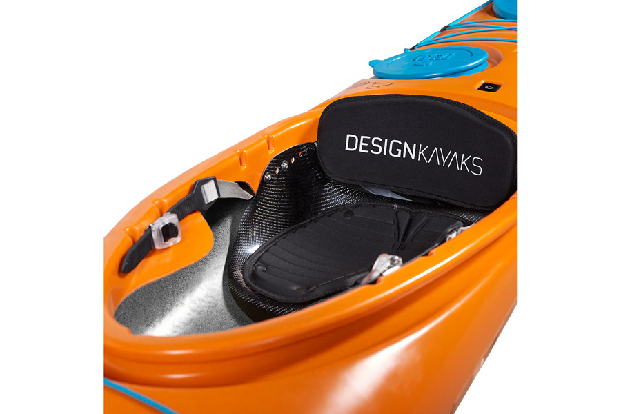 Design Kayaks have outfitted the Endless sea kayak with an ultra-light, super-strong carbon seat, that increases the rigidity and stiffness of the kayak around the seating area. Behind the carbon seat is an extra-padded backrest that gives the paddler comfortable support and connection to the kayak. Inside, the cockpit is very spacious and accommodates a variety of paddlers, especially alongside the adjustable foot pegs, which slide back and forth to achieve the best fit. The thigh braces are inspired by modern white water kayaks, enabling increased control of the kayak without increasing the deck height.