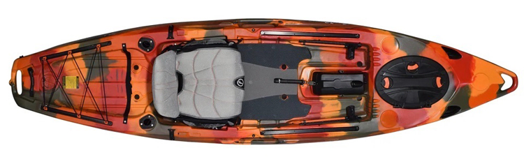Two rear flush mounted rod holders allow fisherman to paddle without rod tips and lines getting in the way of paddling strokes while keeping your rods within easy reach when needed. The front uni-track track system runs parallel along each side of the seating position offering a range of possibility for accessories such as additional rod holders, camera and GoPro mounts, fish finder equipment or even a cup holder.