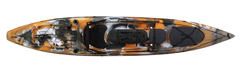 The improved Trident 13 has all the features in a 13' hull. The Comfort Tech seat combined with the adjustable foot pegs allows almost any paddler to hit their comfort zone in stride. The Trident 13 quick yet stable hull performs well in almost any water application but you'll notice the superb performance in breaking surf and rough seas.