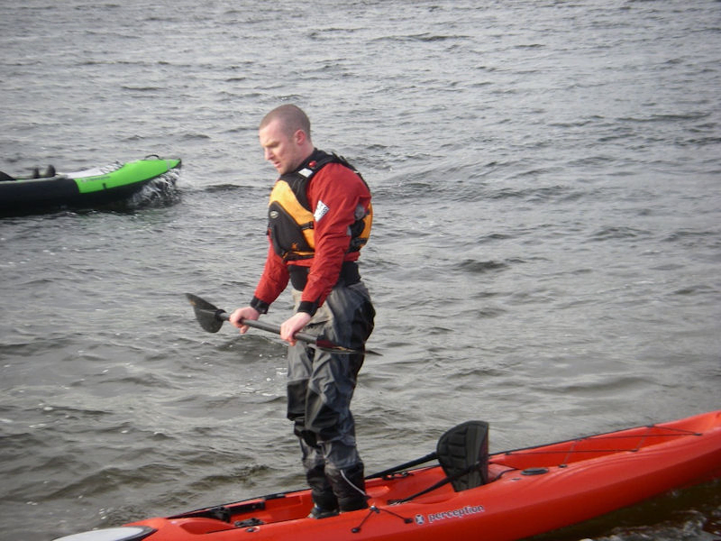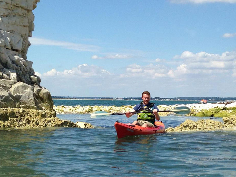 Liam paddling the Perception Triumph 13 fitted with optional fishing rod holders off the coast of Cornwall.