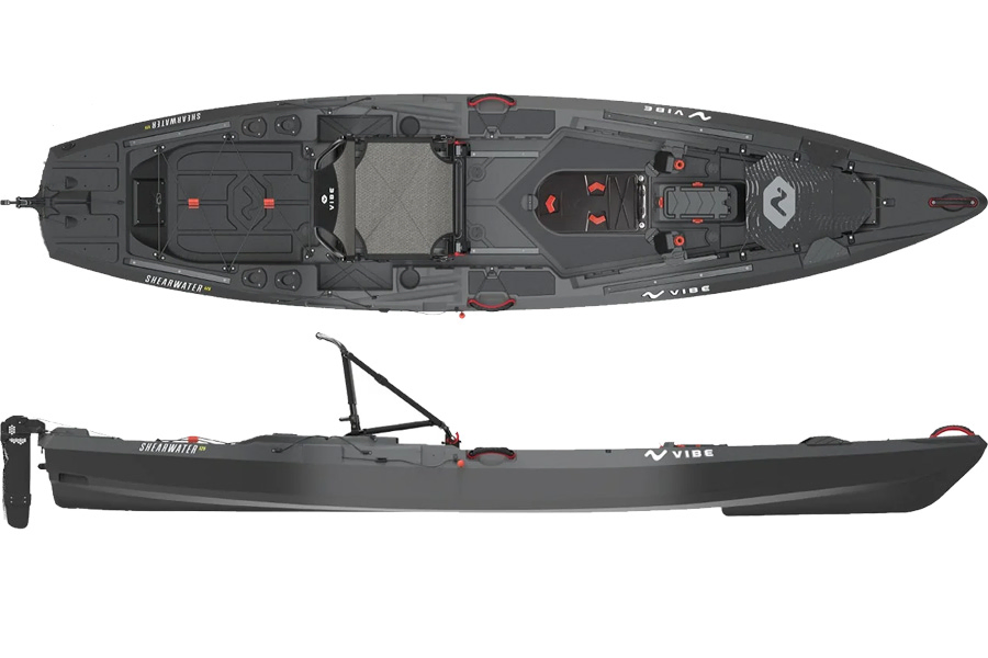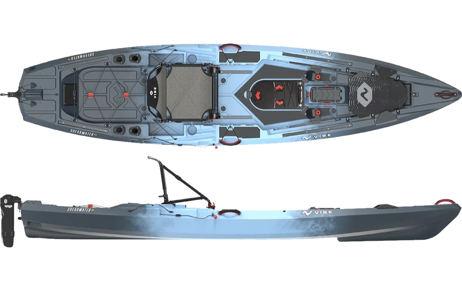 The Vibe Shearwater 125 fishing kayak features the super comfy, highly supportive Summit Seat, which offers multiple seating positions for varying fishing conditions. Underneath the seat you'll find the Vibe Versa Drawer storage tray for keeping gear secure and close to hand. The Shearwaters hull design provides maximum stability, allowing the paddler to stand on the grippy deck padding to achieve greater reach and more accurate casting.