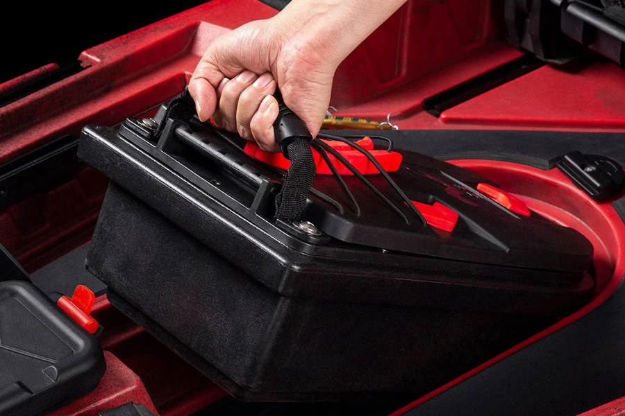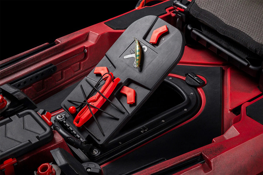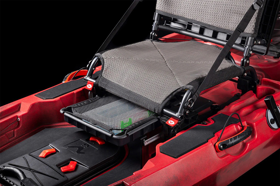 - Storage slots for up to 4 tackle boxes, either side of the seat