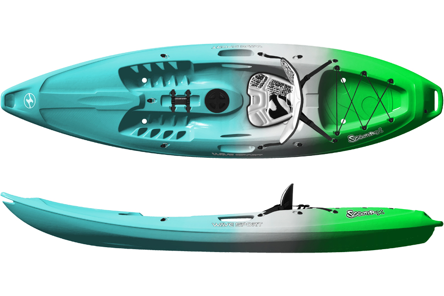 The Wave Sport Scooter X is a class leading general purpose sit on top kayak designed for coastal paddling, touring on lakes, estuaries, rivers, and even surfing in small waves. Wave Sport kayaks are manufactured in the UK and have a reputation as being made to the highest quality using High Density Polyethylene plastic (HDPE).