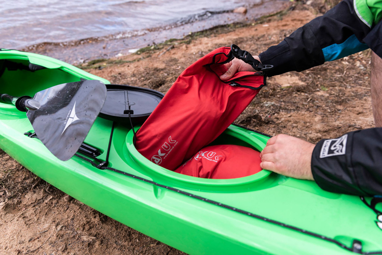 Bow and stern storage with rubber hatches and sealed bulkheads provide ample storage for anything you want to take with you, while the small deck hatch on the foredeck, just in front of the paddle position, allows you to keep things you might need in a hurry close at hand. Deck bungees and reflective deck lines allow for topdeck side storage and attachment, and really finish the storage in the Hydra of well.