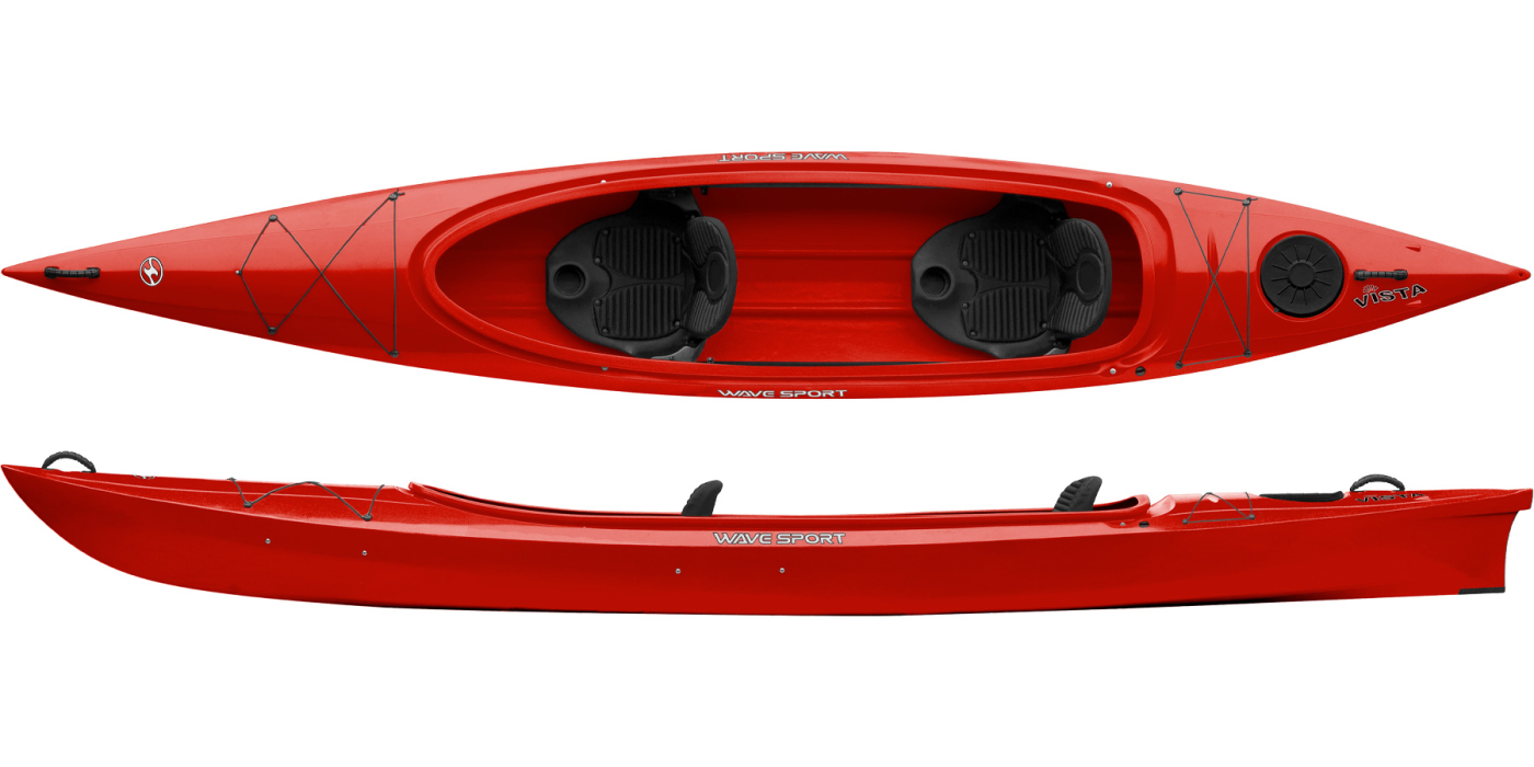 The Wave Sport Vista is a quick, efficient touring kayak with an oversized cockpit that offers paddlers with a choice of seating options. The kayak combines a long waterline with sharp v-shaped bow and stern profiles to give greater tracking in all conditions. The hull also has tracking channels that give confidence to even the most novice paddlers.