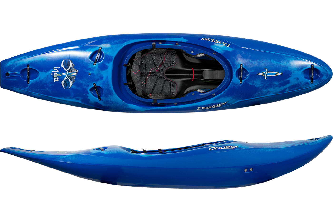 The Dagger Indra shares the upturned bow rocker from the Dagger Code and Rewind designed built to rise over drops, waves, and hydraulics. The wide planing hull stops the kayak dropping below the surface and keeping you going over whitewater features while the angled/tapered stern deck borrows from half-slice design allowing the Indra to slice through currents, "load the stern", and skip through rapids.