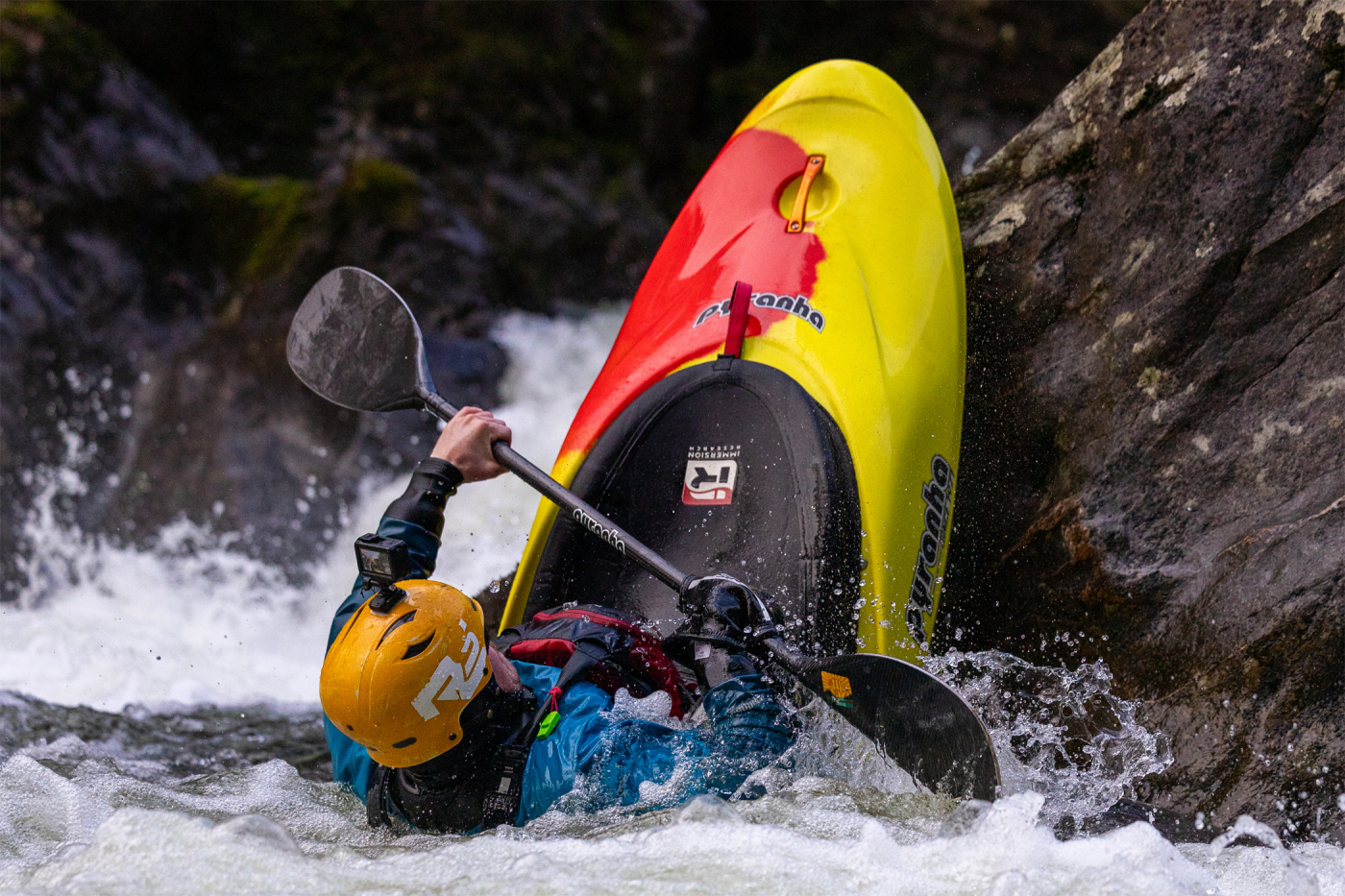 A shorter half-slice designed for paddlers who want a responsive ride, the Storm features a wider hull, evolved rail design, and a revised rocker profile. These elements combine to create a loose-feeling design. Drawing on features developed for the Pyranha ReactR, the Storm allows paddlers to engage the rails for directional control on waves, in holes, or while paddling downstream, while still allowing quick spins when the hull is flat.